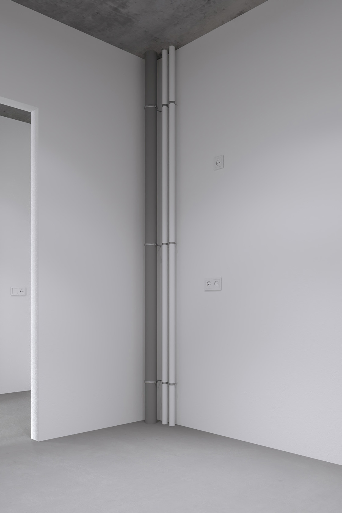- Выполнена инженерная сантехника: заведены коммуникации на 6 мокрых точек — ванна, унитаз, раковина, стиральная и посудомоечная машины.